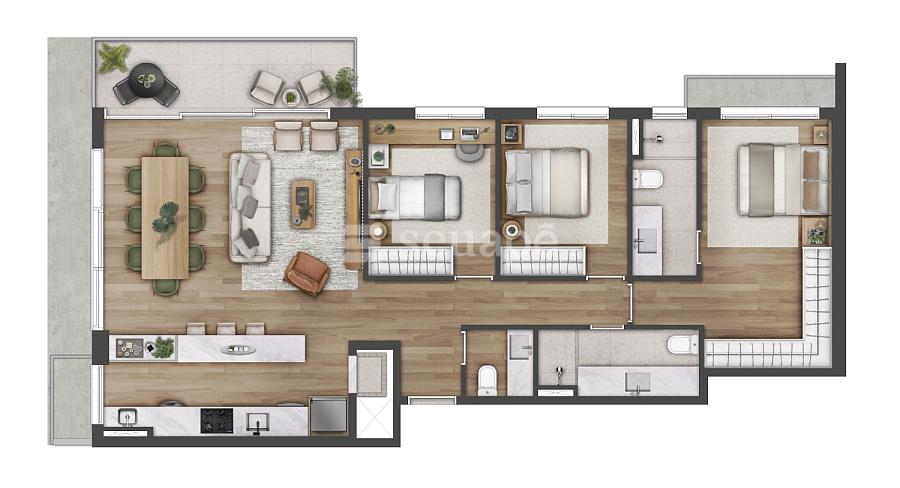 3 dormitórios (1 suíte)